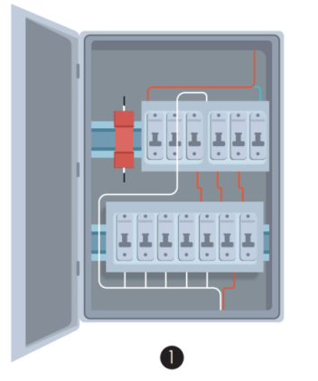 1. वितरक बॉक्स में आग बुझाने वाला उपकरण स्थापित करें।