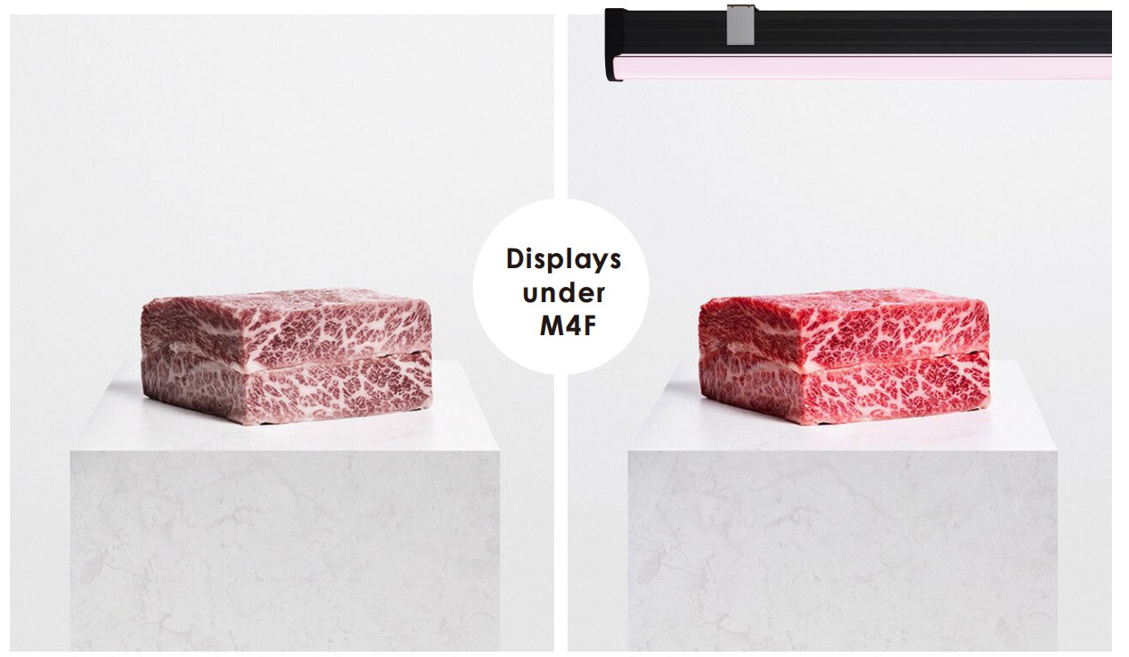 M4 अल्ट्रा-स्लिम स्ट्रिप लाइट पर आधारित,फ़ैन्क्सस्टारविशेष रूप से सुपरमार्केट में मांस अनुभाग के लिए स्पेक्ट्रम 4000K+6500K+रेड 660nm बनाने के लिए प्रकाश स्रोत में समायोजन किया है। इस मांस प्रकाश स्पेक्ट्रम की रोशनी के तहत, हम जो मांस सुपरमार्केट में बेचते हैं वह अधिक रसदार और ताज़ा दिख सकता है, जिससे मांस की बिक्री बढ़ जाती है।