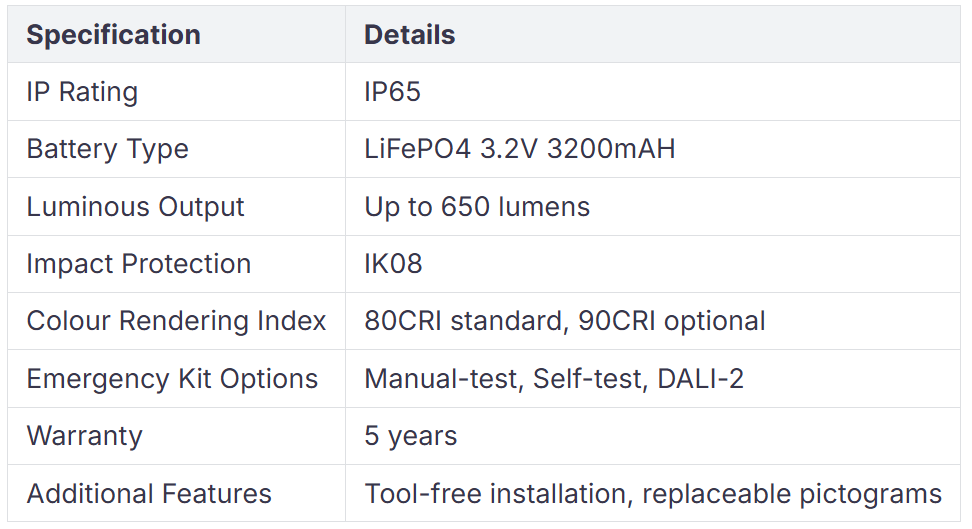 फैनएक्सस्टार का औद्योगिक स्व-निहित एलईडी इमरजेंसी बल्कहेड आधुनिक आपातकालीन प्रकाश का एक अच्छा उदाहरण है। यह आपातकालीन फिटिंग उज्ज्वल, स्थिर रोशनी के लिए नई एलईडी तकनीक का उपयोग करती है। इसकी IP65 रेटिंग के साथ मजबूत बॉडी है, इसलिए यह धूल और पानी से दूर रहती है। अंतर्निहित LiFePO4 बैटरी आपात स्थिति में प्रकाश को लंबे समय तक काम करने देती है। फ़ैनक्सस्टार की आपातकालीन बल्कहेड लाइट सख्त सुरक्षा नियमों को पूरा करती है, इसलिए कई इमारतें इस पर भरोसा करती हैं।
